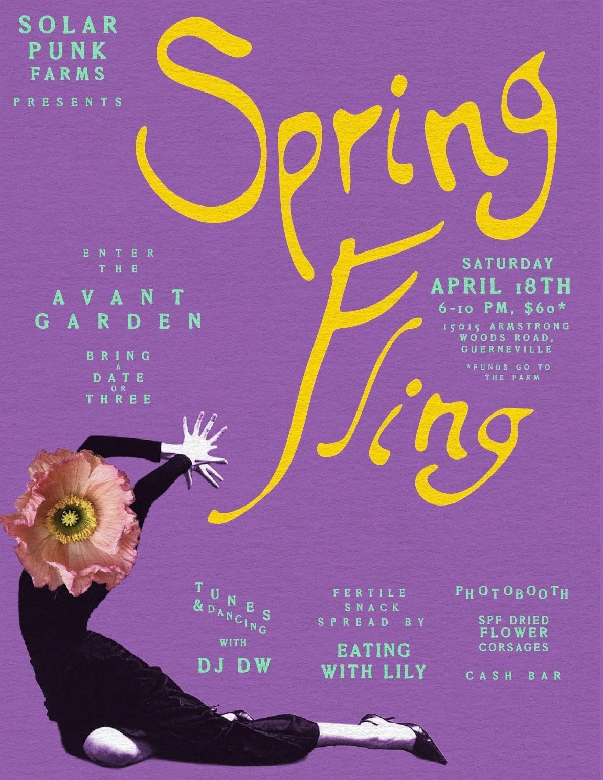 Create or source your best AVANT GARDEN outfit, and join us for our first-ever SPRING FLING DANCE PARTY. There will be tunes, snacks, bevvies, and more. The ethereal Eating with Lily, whose food was once aptly described as "ovulating", will be providing our glorious snack board, lush with seasonal delights.